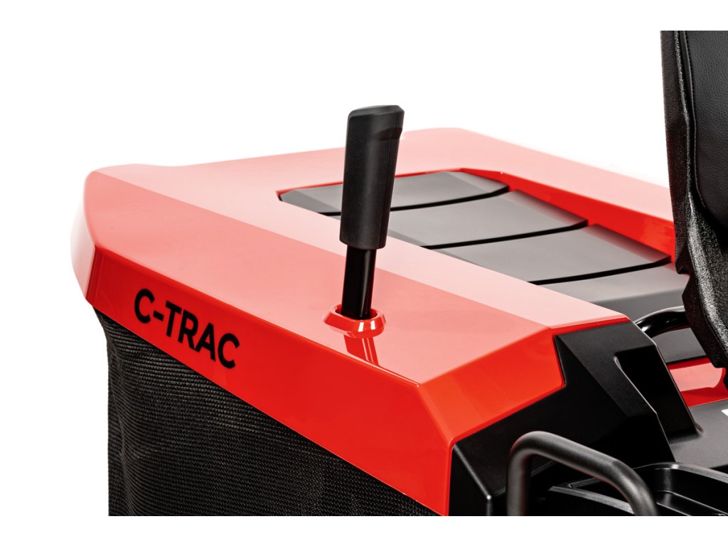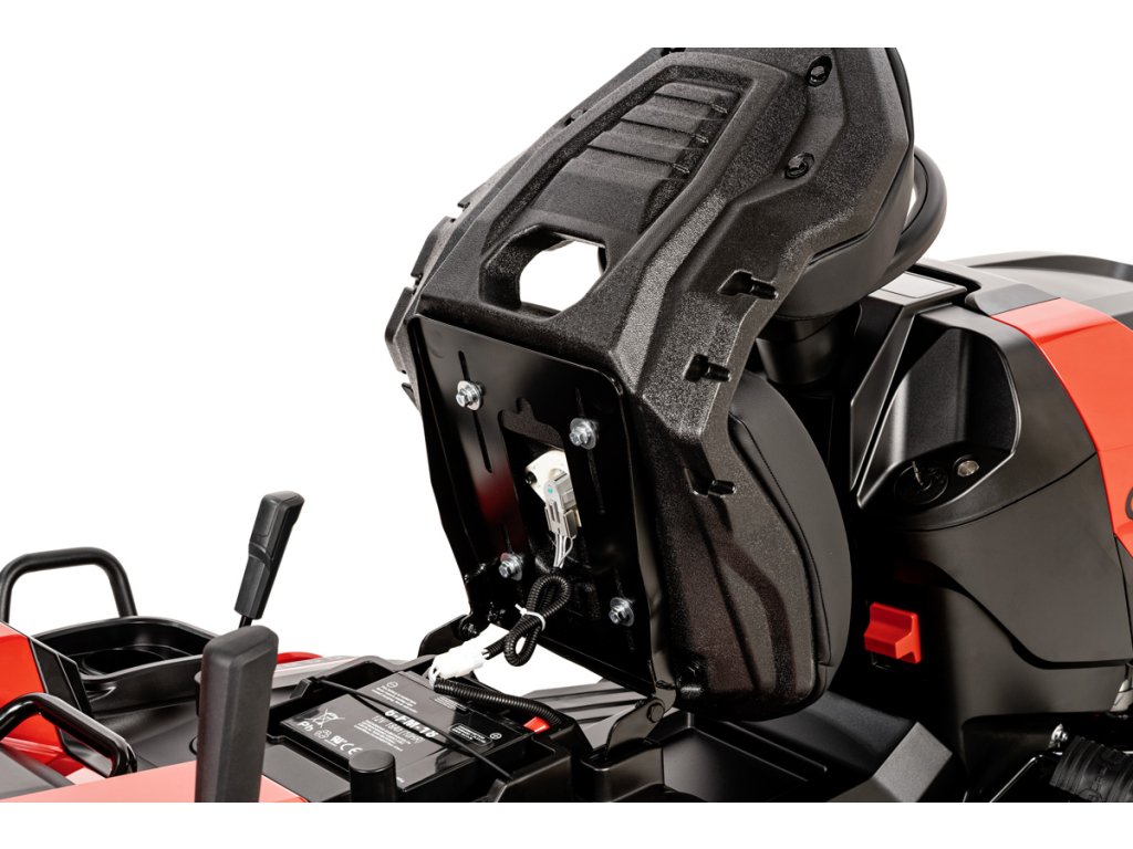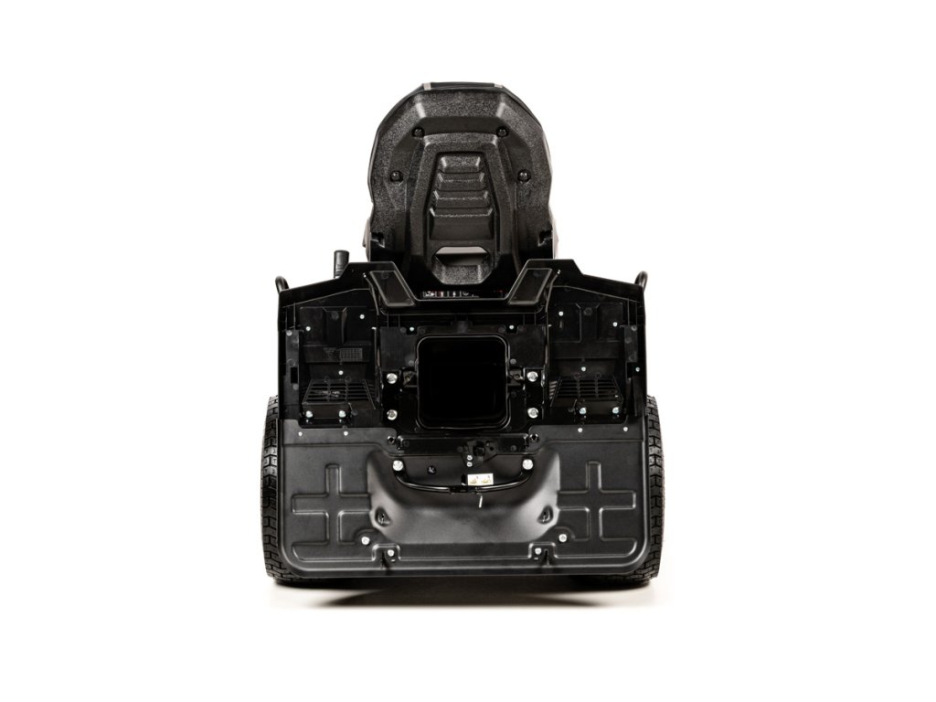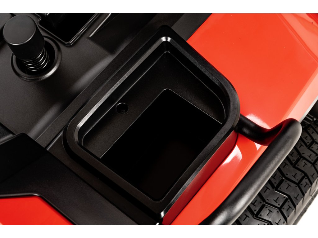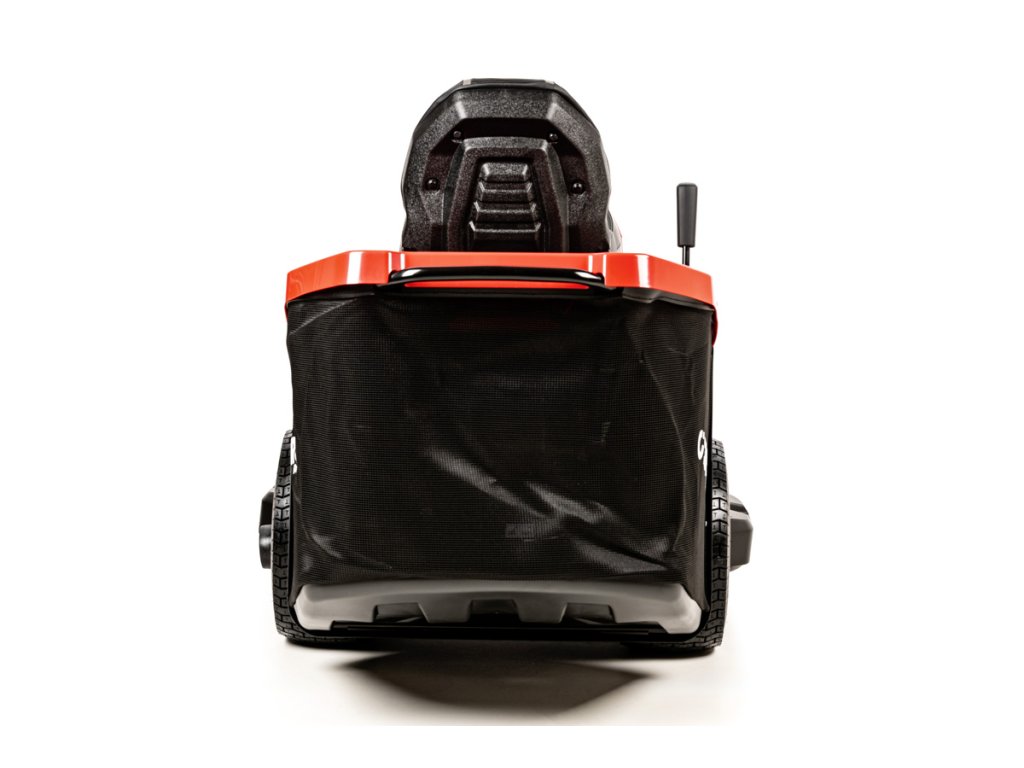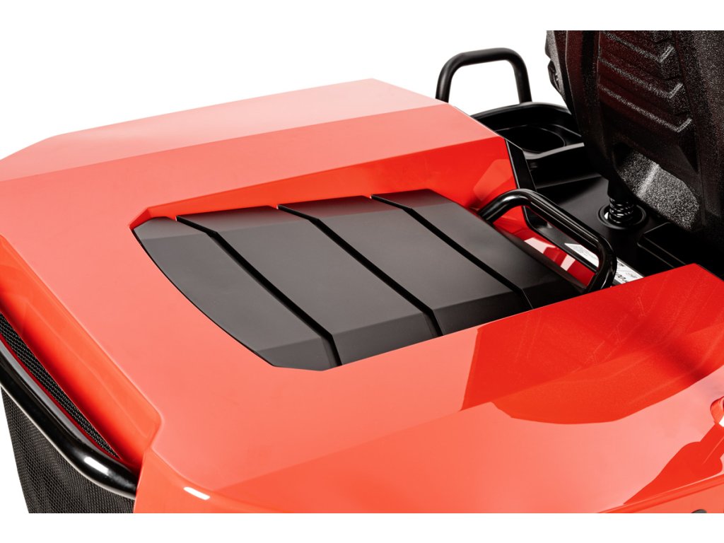 - Tráva je odvádzaná do veľkého zberného koša s objemom 280 litrov, ktorý má senzor naplnenia a snímač správneho nasadenia. Traktor disponuje aj funkciou mulčovania a možnosťou kosenia pri cúvaní (RMO).